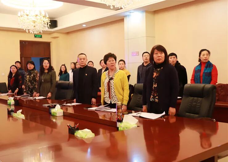 观看到奏国歌时,全体干部职工在院领导的带领下,集体起立共同唱响国歌