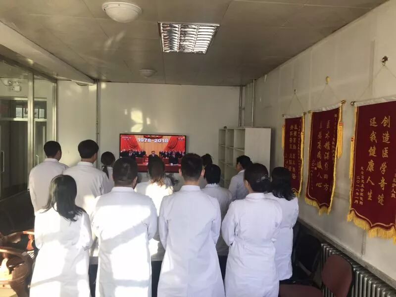 12月18日上午,大庆市第三医院机关全体人员在院领导的带领下,准时来到会议室,怀着喜悦的心情集中收看纪念改革开放40周年大会直播盛况,聆听了习近平总书记的重要讲话。大家聚精会神、边听边记,仿佛置身于大会现场,掌声伴随改革开放40周年来取得的伟大成就,一次次响起,激动与自豪之情溢于言表。
